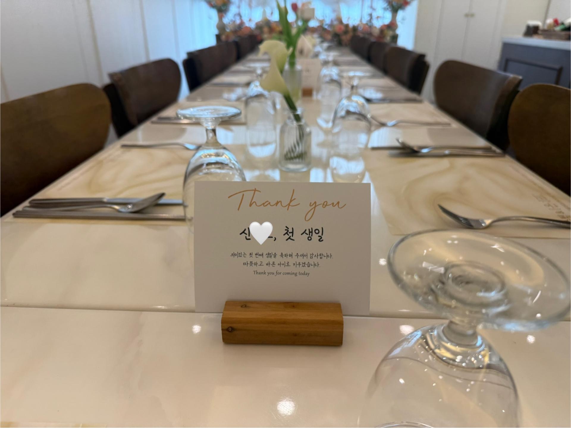 그렇게 스냅을 찍고 오자 손님들이 하나 둘 오셨고 상차림 세팅 해주신 업체 직원분이 돌잔치 사회까지 봐주시며 돌잔치가 마무리 되었습니다.